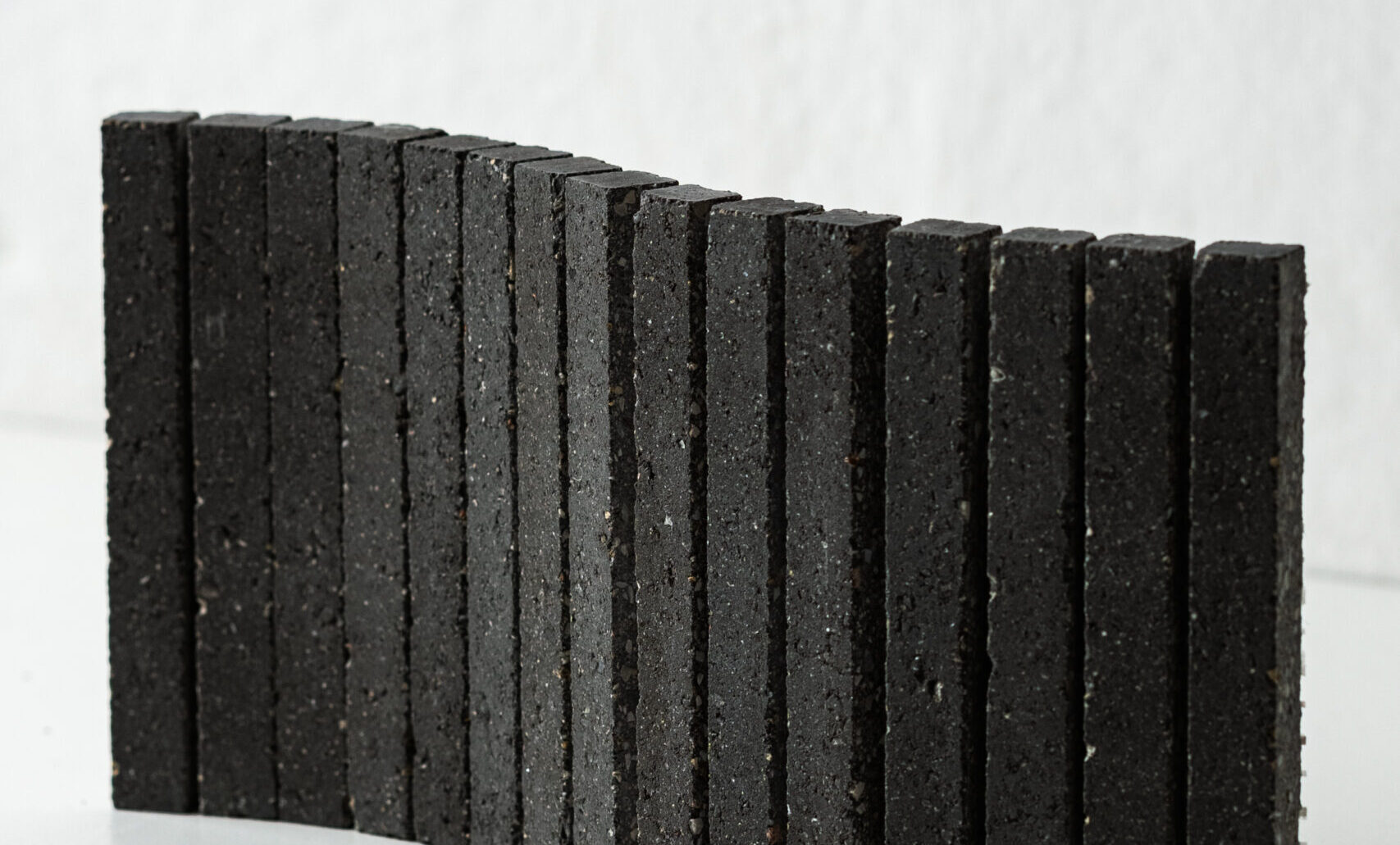 RAW MATERIALS RECOVERED AND GROUND INTO AN ORIGINAL MIX THEN COMPACTED BY PRESSING