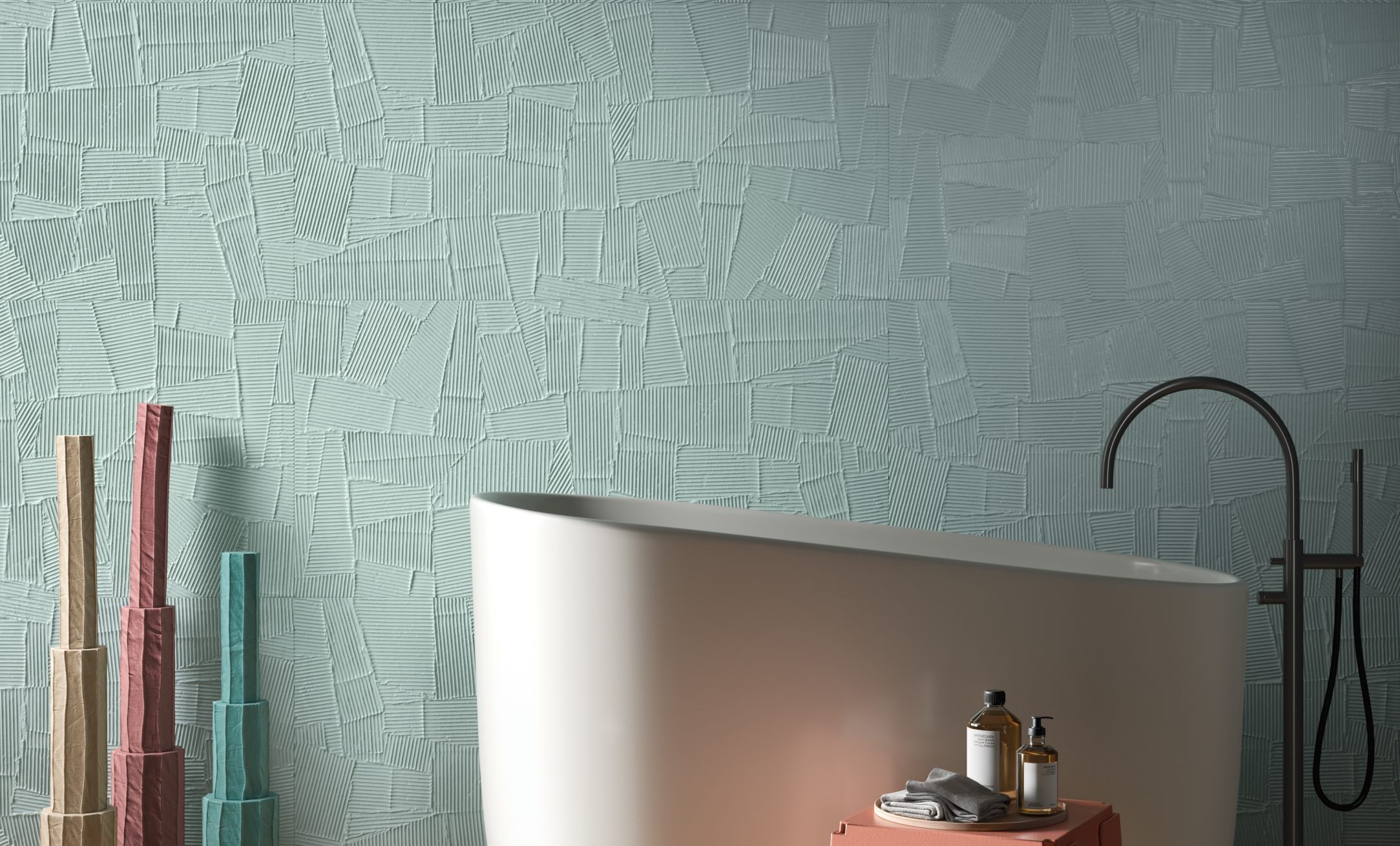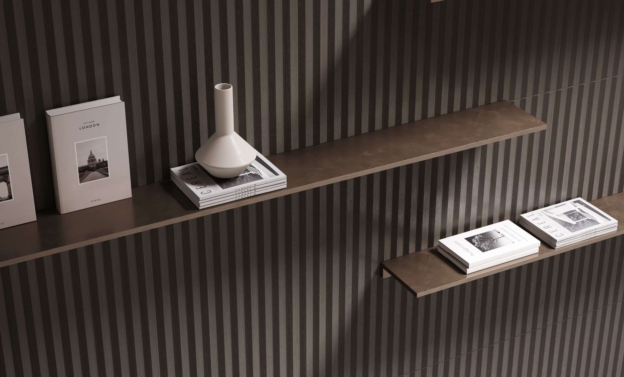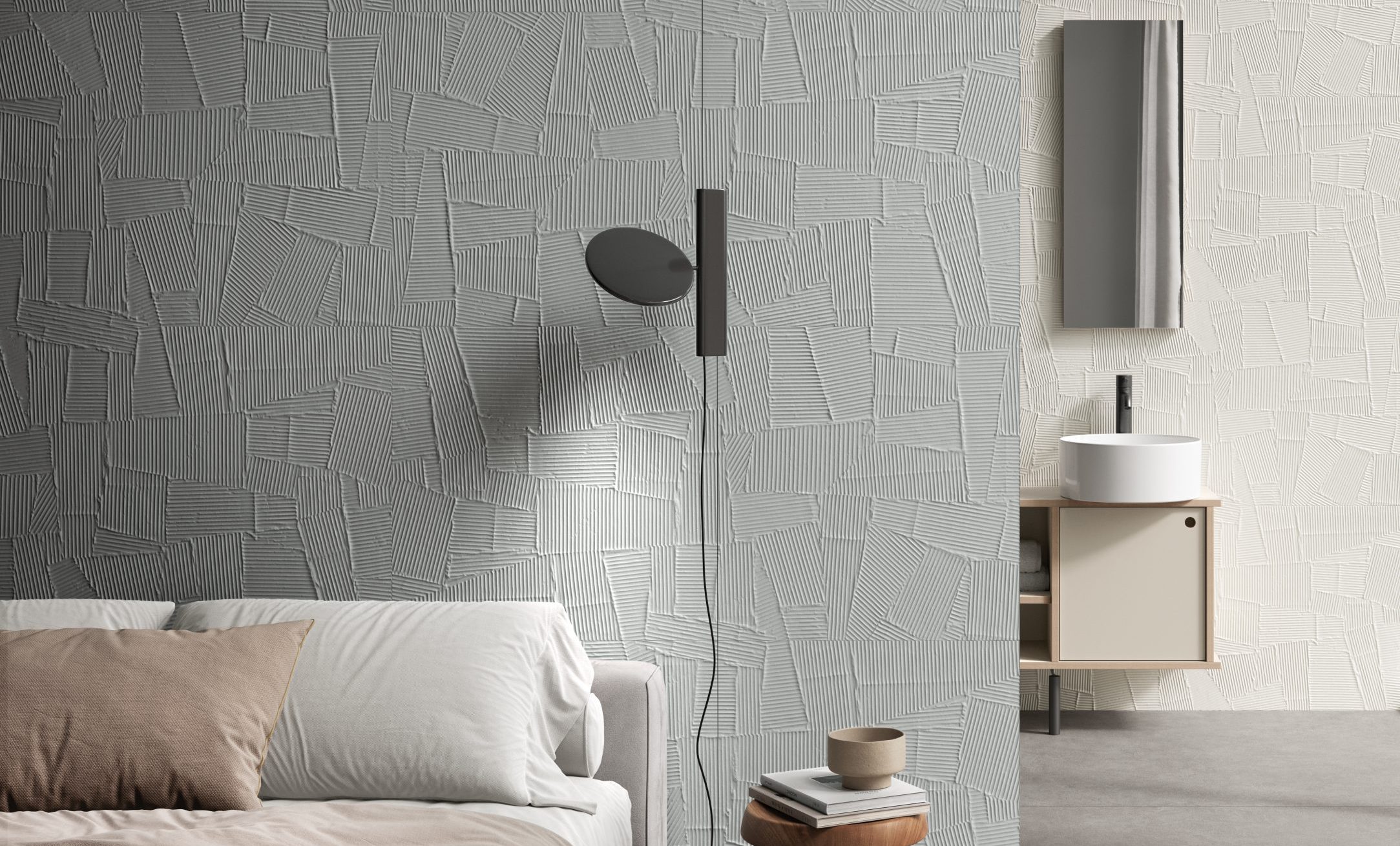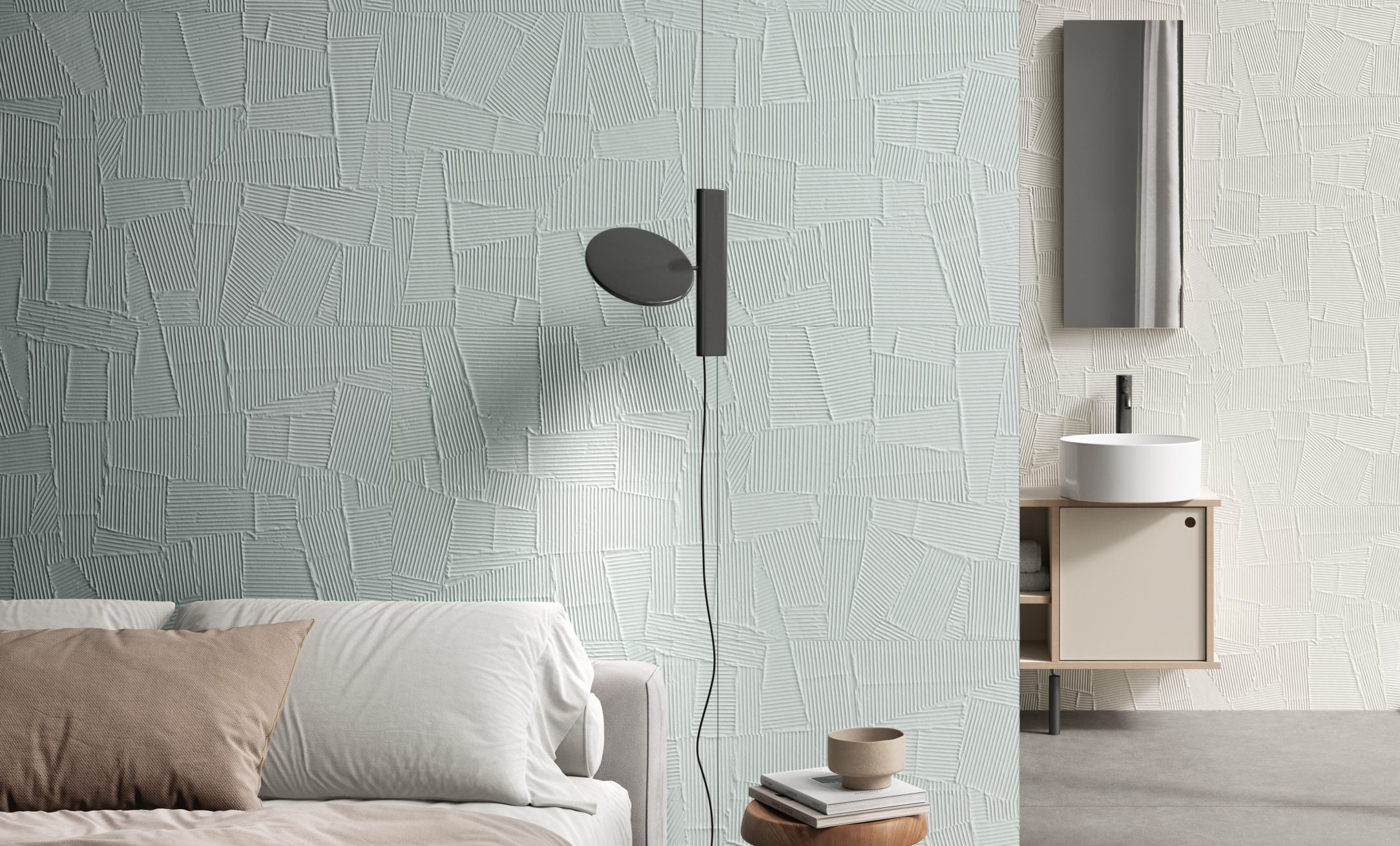 HOMEY arises by the idea of obtaining natural-looking surfaces inspired by the earth, specifically clay with its warm colors and shades ‘ton sur ton’ obtaining a soft surface, ideal for a warm and cozy home. From the clay, pressed in established forms, then dried and fired, are created the bricks of various architectural ornaments used in construction. The Homey collection draws inspiration from these elements and presents two tridimensional textures, a brick shaped (Stripes) available either matte and glossy finish, one with triangular geometries (Canneté) recalling the contemporary wooden boiseries and one celebrating the excellence of Italian handcraftmanship (Paper Clay).