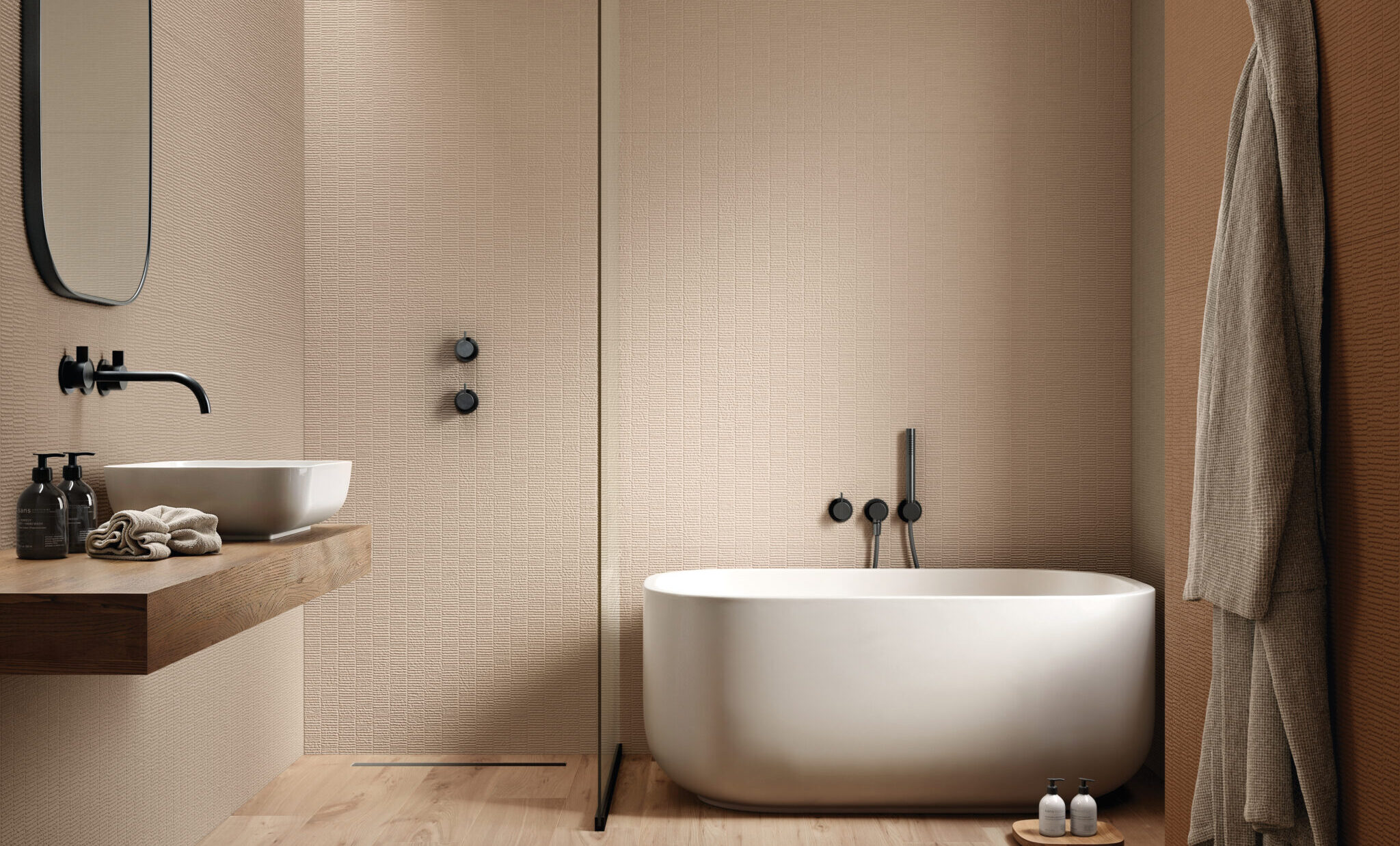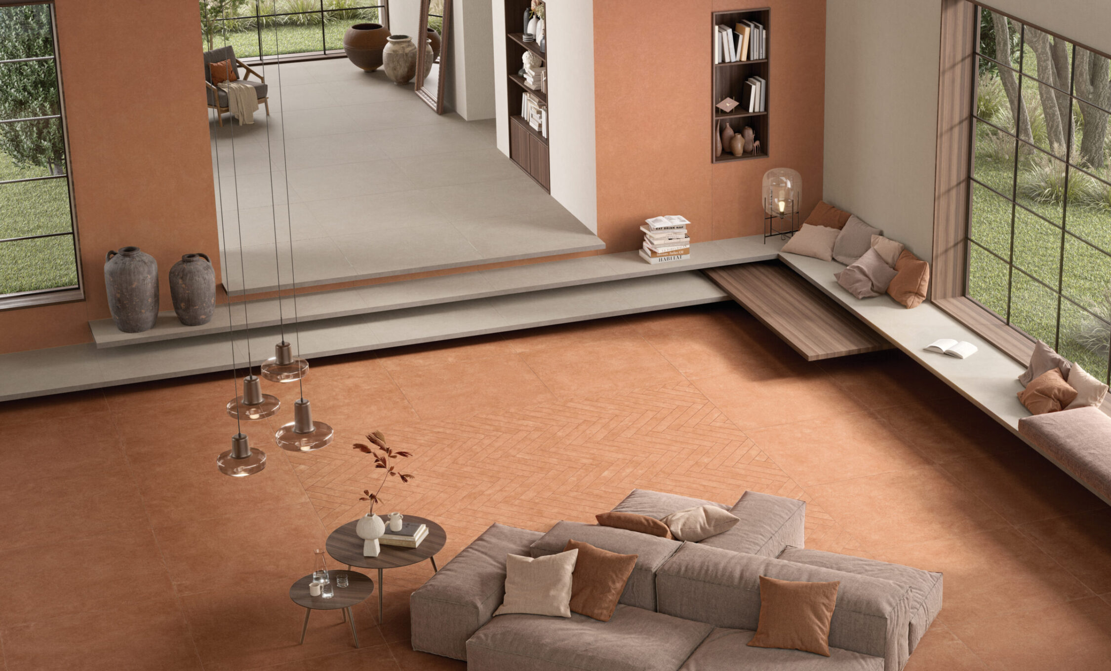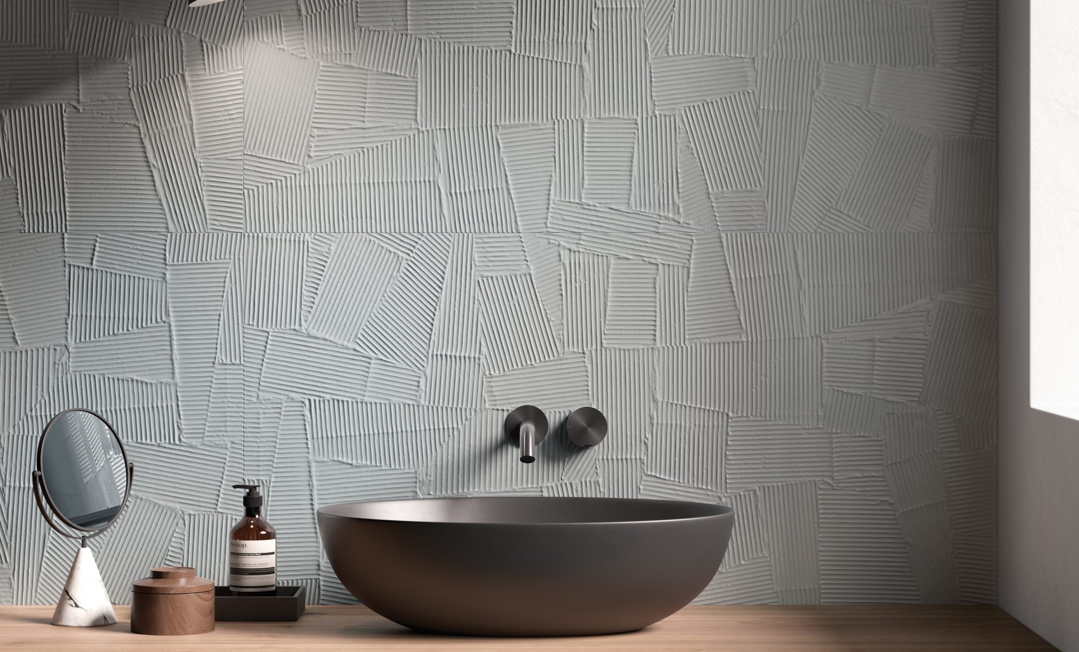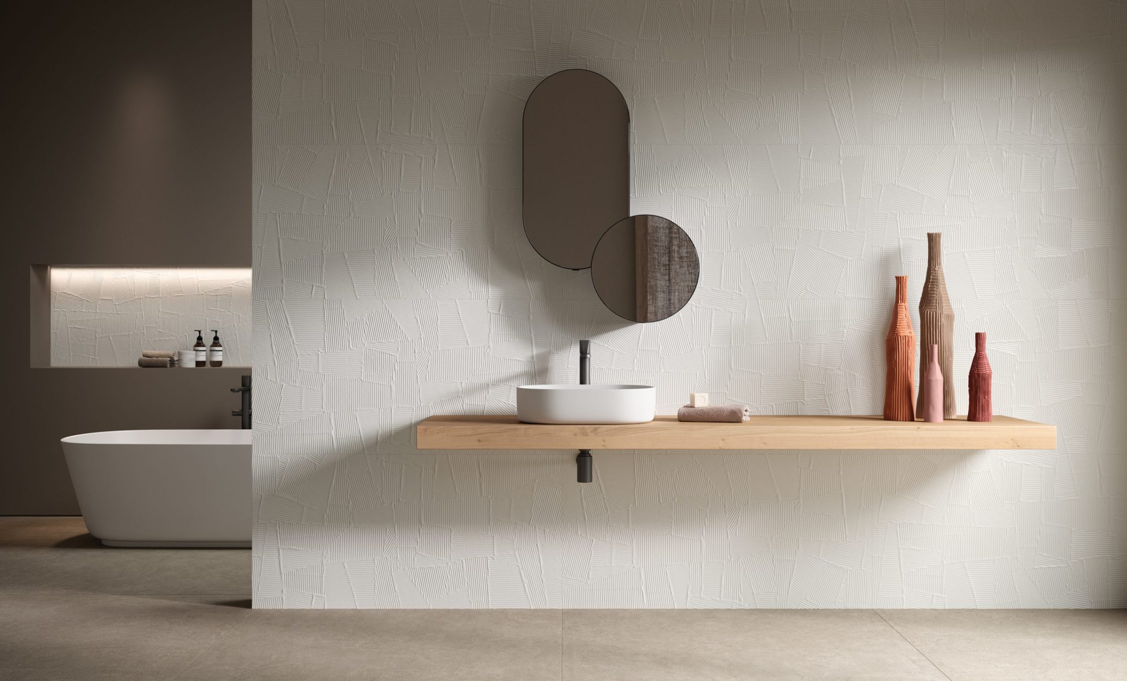 HOMEY arises by the idea of obtaining natural-looking surfaces inspired by the earth, specifically clay with its warm colors and shades ‘ton sur ton’ obtaining a soft surface, ideal for a warm and cozy home. From the clay, pressed in established forms, then dried and fired, are created the bricks of various architectural ornaments used in construction. The Homey collection draws inspiration from these elements and presents two tridimensional textures, a brick shaped (Stripes) available either matte and glossy finish, one with triangular geometries (Canneté) recalling the contemporary wooden boiseries and one celebrating the excellence of Italian handcraftmanship (Paper Clay).