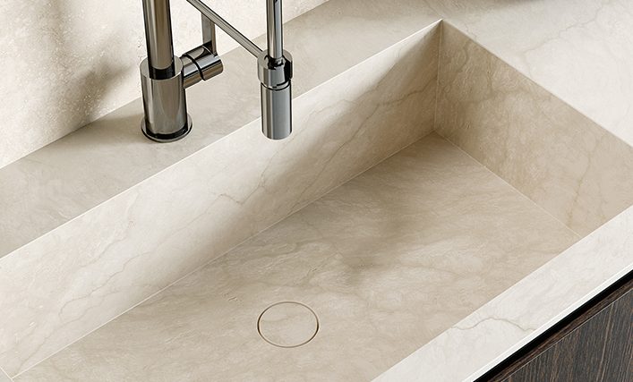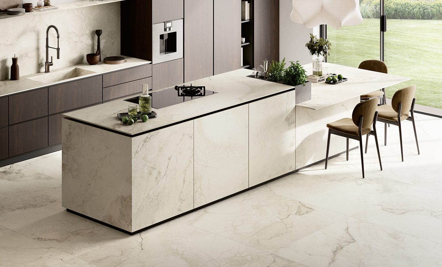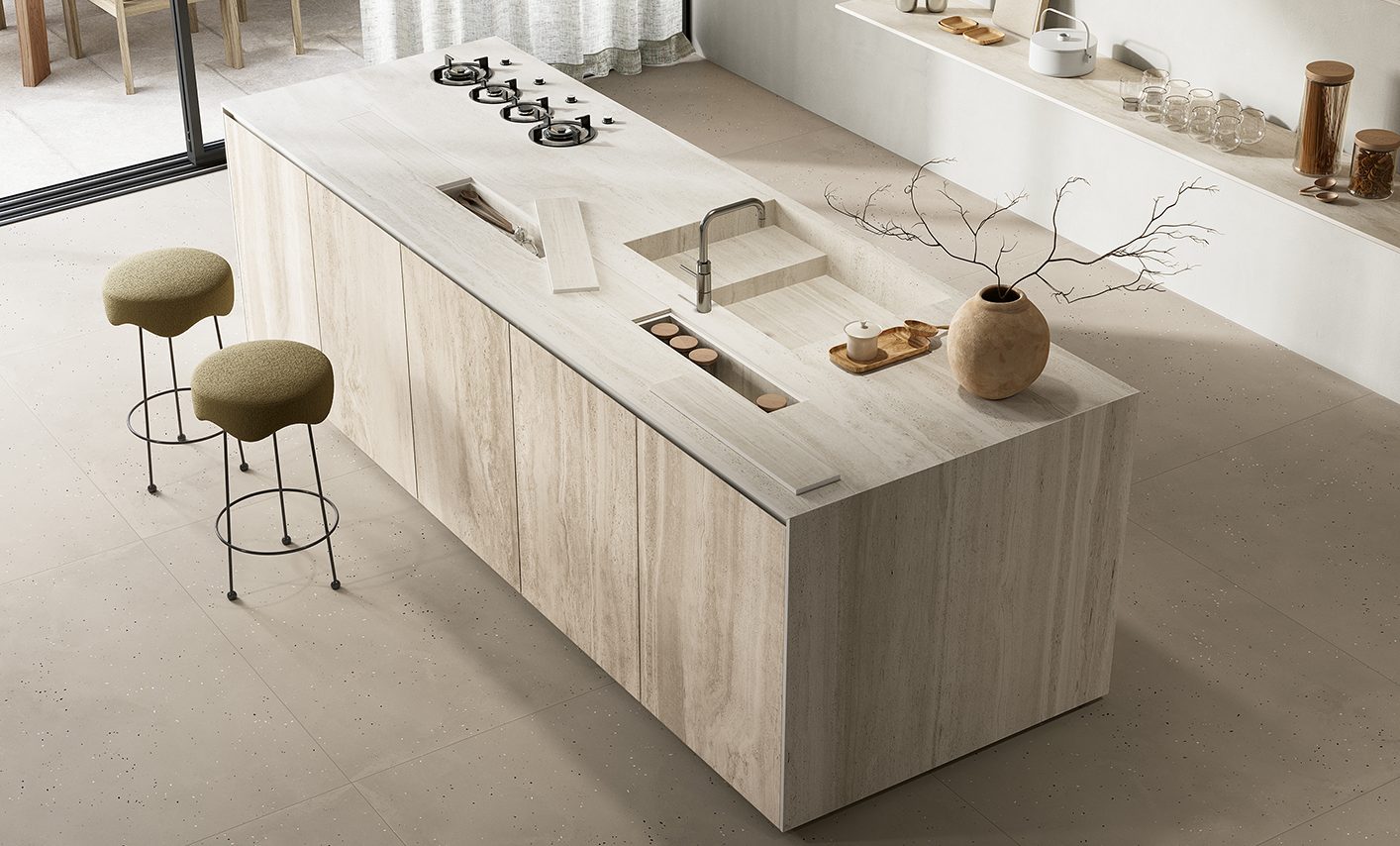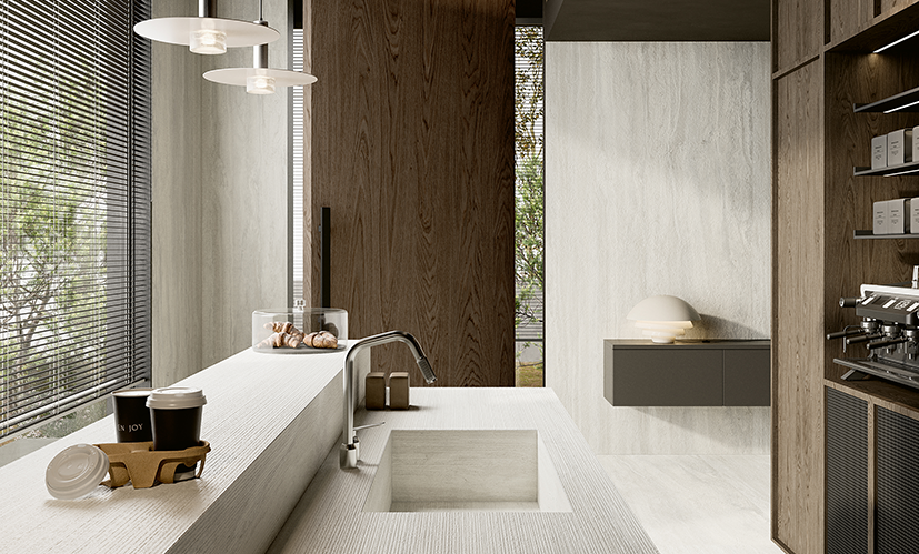 IMMENSA brings together a refined selection of stone-effect surfaces with a thickness of 12 mm, representing the utmost stylistic and technical expression of our way of making ceramics. Our research has always been based on a vision that maintains a deep connection with nature, and over the years has led to the creation of the most outstanding ceramic surfaces available anywhere. IMMENSA is the necessary evolution of an elegantly sophisticated ceramic material that offers even better properties and versatility. Its minimalist appeal and tactile depth are the result of expert workmanship and innovative production technologies that are able to faithfully reproduce the chromatic variations, low levels of reflection and depth typical of the original stone by which it is inspired, creating extraordinary tactile sensations.