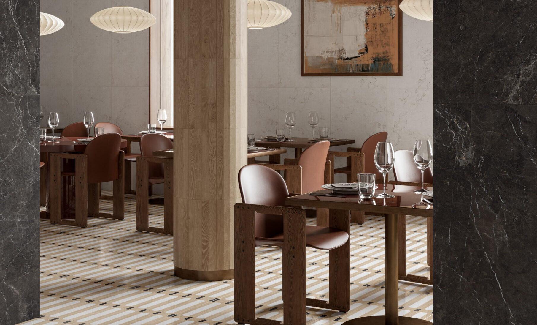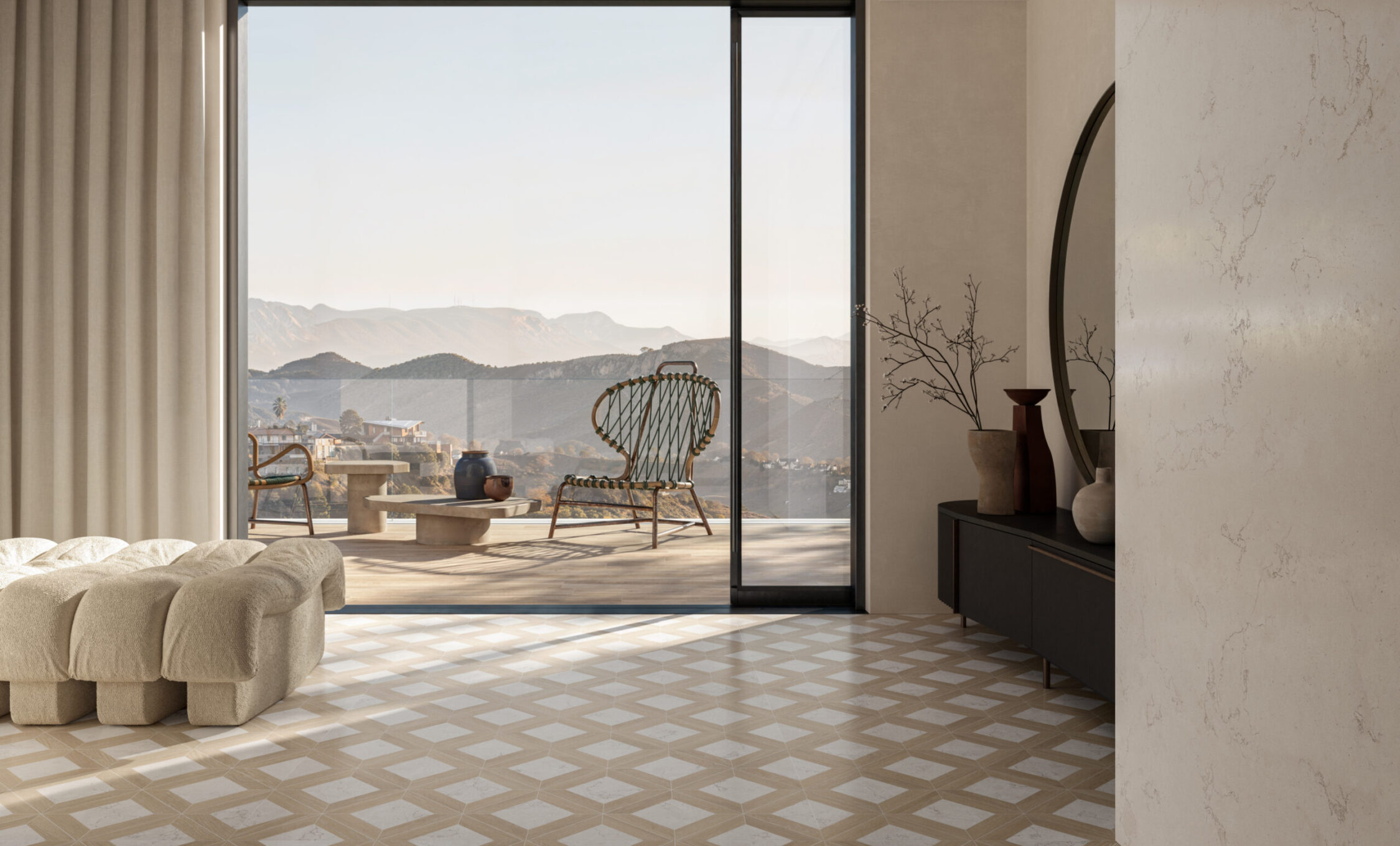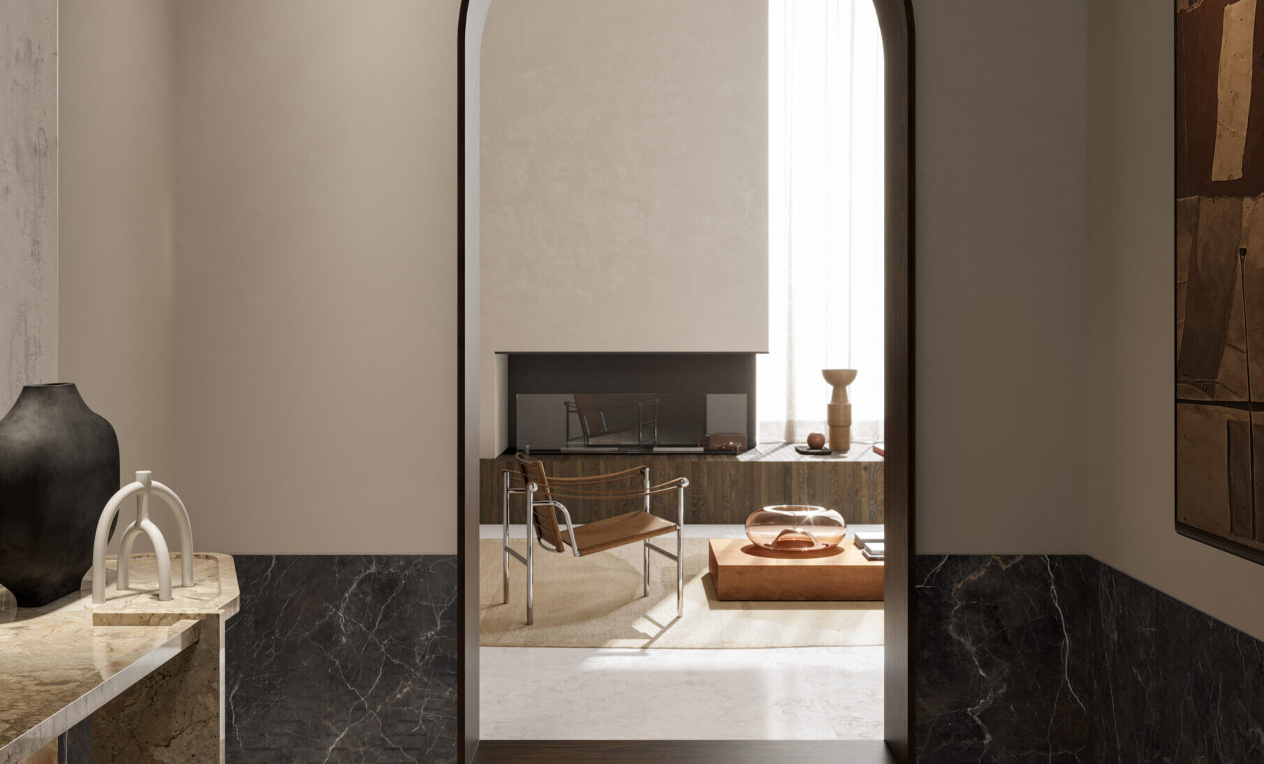 MATERIA VIVA takes shape from two marbles that interpret light and depth: Biancone, bright and essential, and Mistik Brown, warm and enveloping. Together they create balance, elegance, and authenticity in every space. The 3D HONED finish enhances visual and tactile depth with a soft, satin touch. Decorative elements introduce rhythm and architectural compositions. A timeless material language, designed for contemporary architecture.
