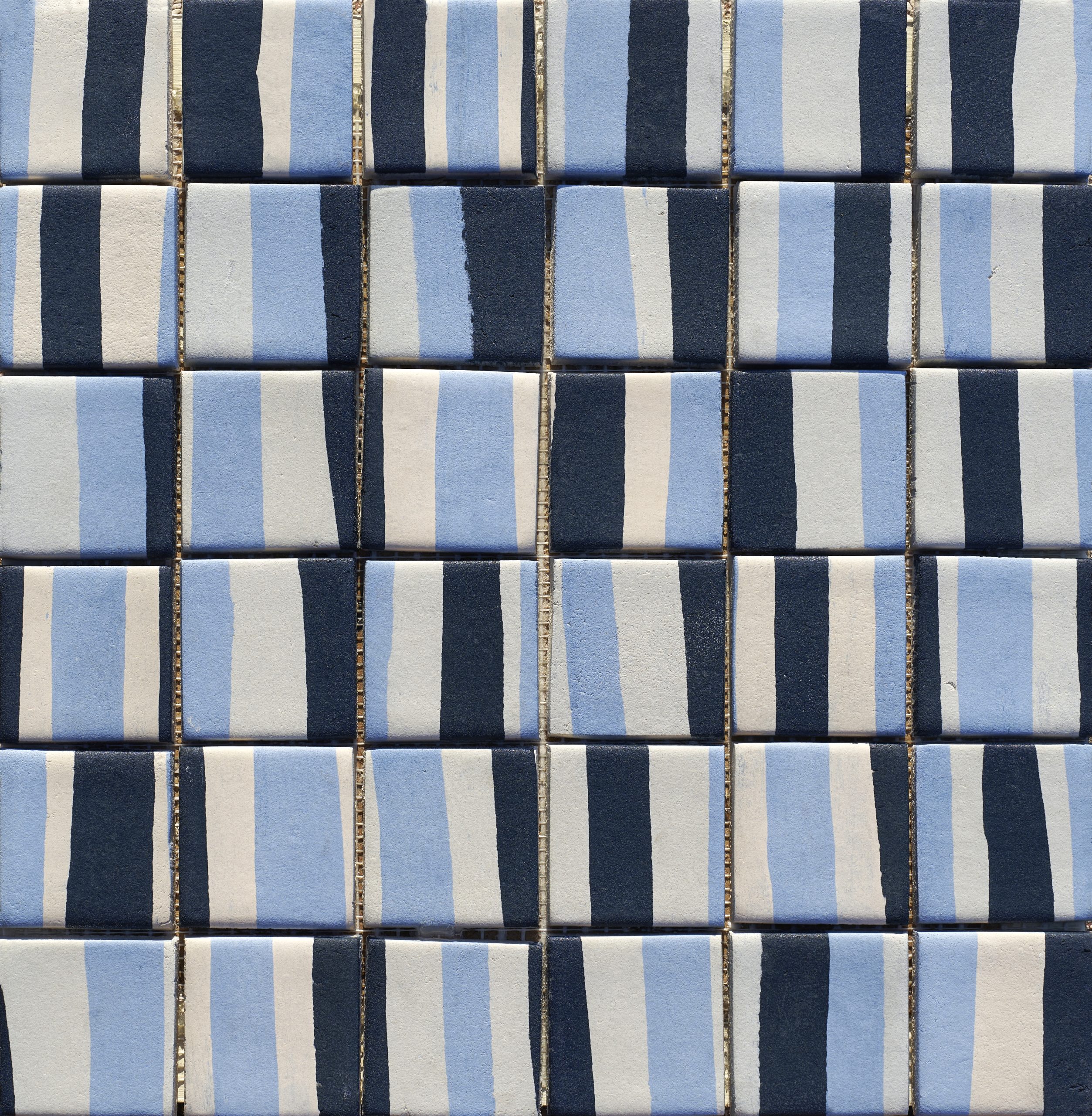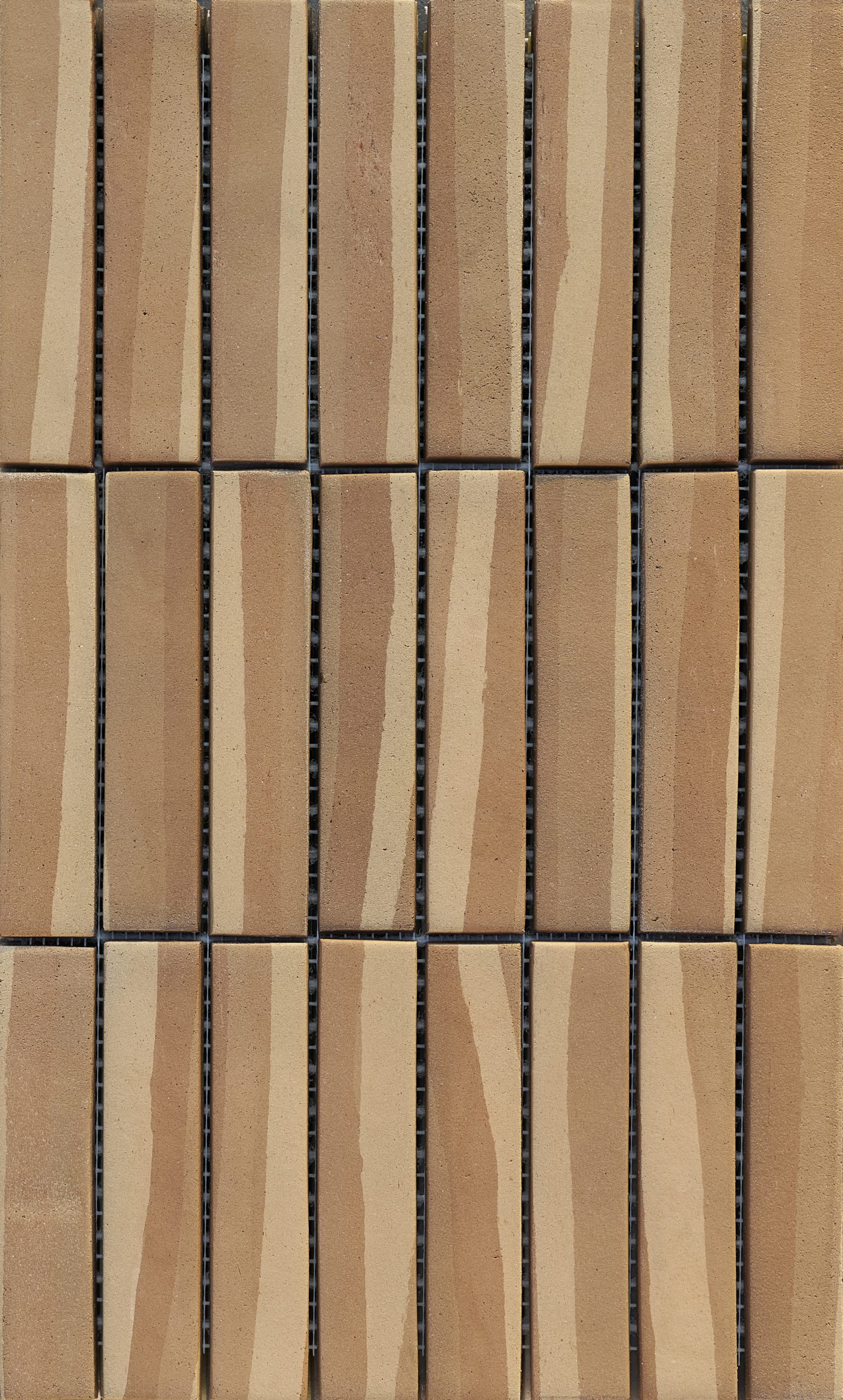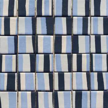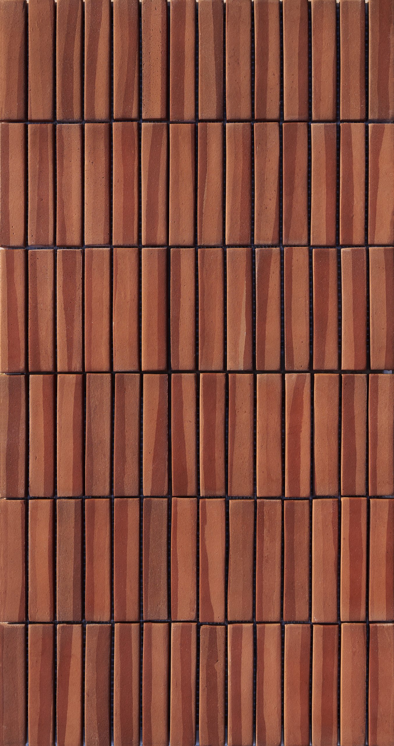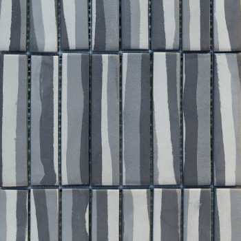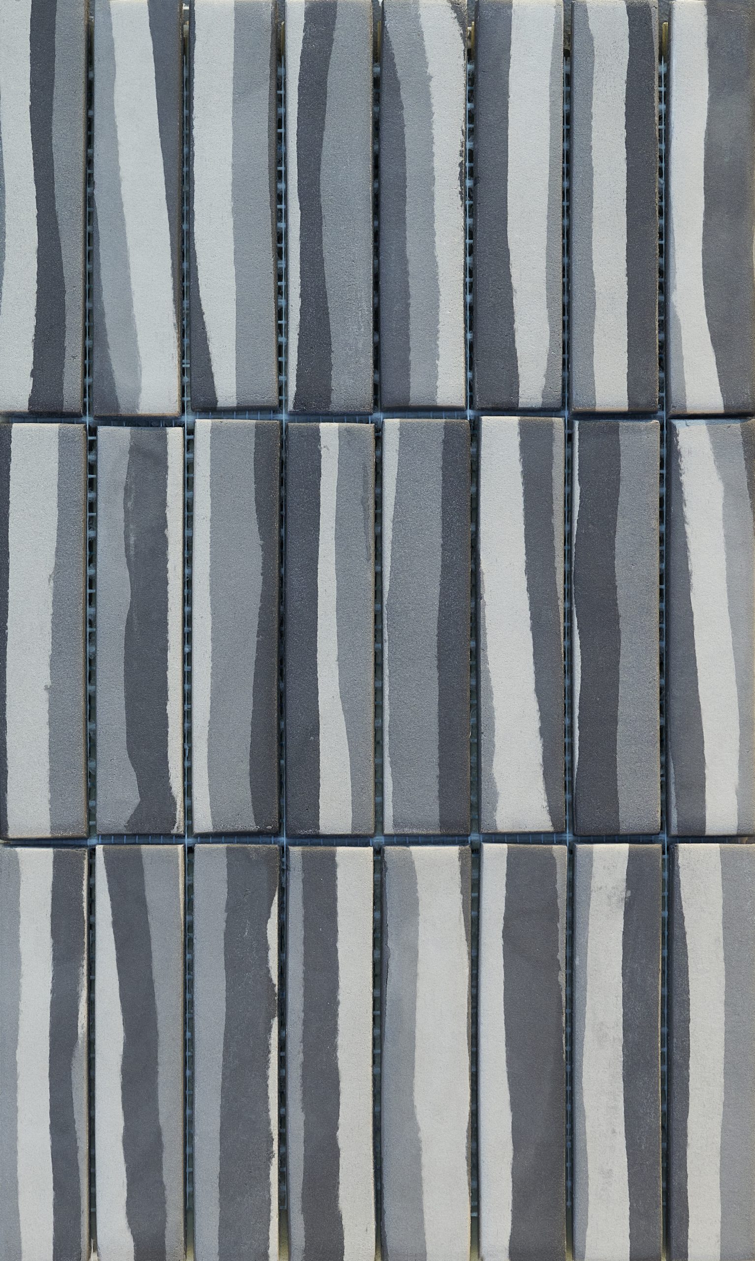 The collection is available in two mesh-mounted formats: a 2″x2″ (5.3×5.3cm) square format, ideal for creating classic patterns and regular lines, and a rectangular one with 1″x5.5″ (2.6x13cm), perfect for more detailed surfaces and texture play. Thanks to the quality of the materials, the tiles are suitable for both flooring and wall applications and can be used in both indoor and outdoor spaces.